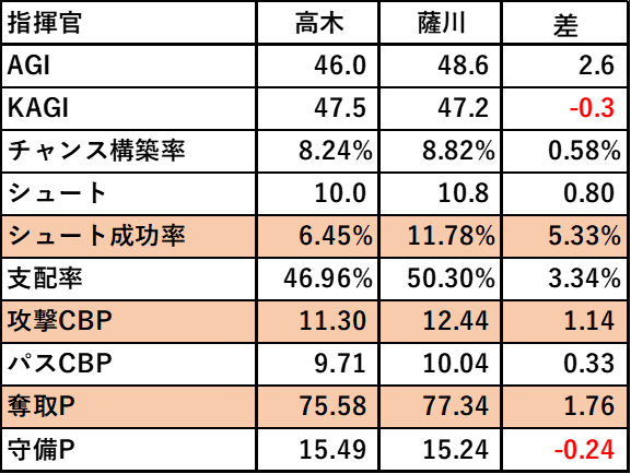 そして監督交代による変化ですがシュート成功率、攻撃CBPが向上しています。