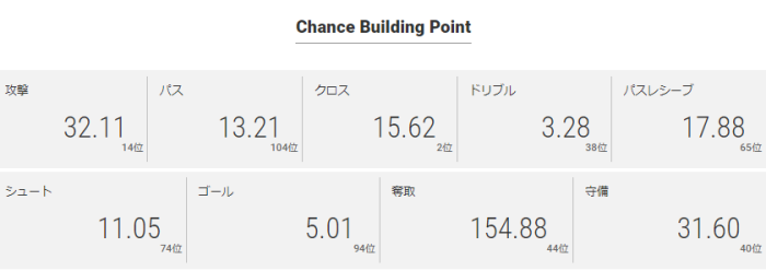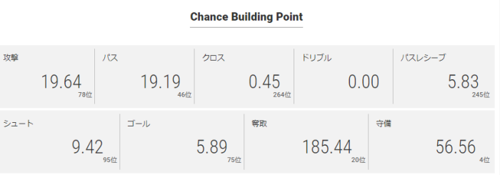 チャンスビルディングポイントの守備でJ3リーグ4位となっています。