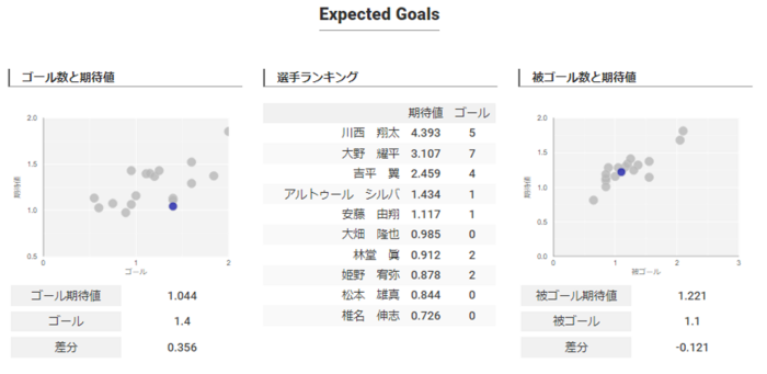 大野選手の 期待値 3.1 ゴール 7 の ratio は凄い!😲