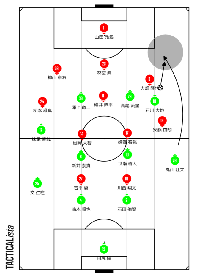 2列目にシルバ選手や右WBに神山選手が上がりCBに今瀬選手、鎌田選手の起用はあるかもしれません。