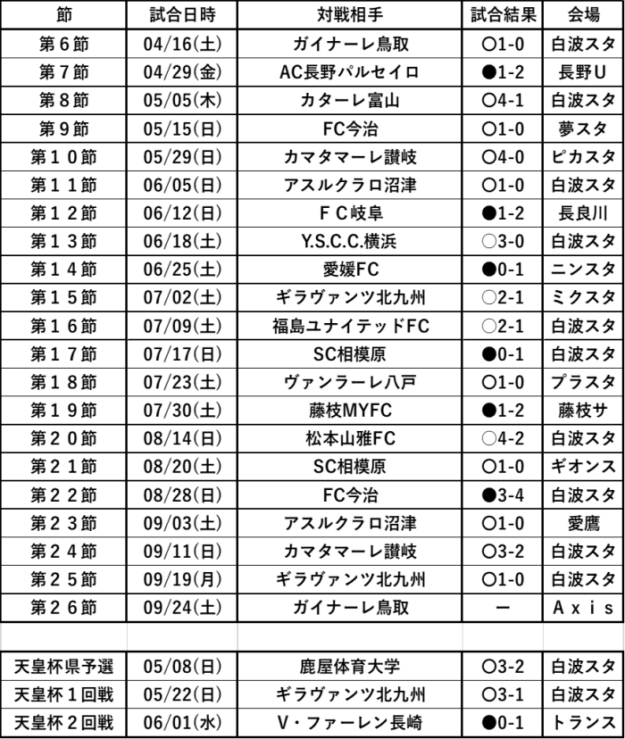 対する鳥取。前節松本戦では2年ぶりにチャントが解禁し始めて聞く選手も多かったのではないでしょうか。スタメンは前節ベンチ外だった高尾選手のスタメン復帰があるかもしれません。