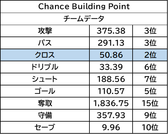 フットボールラボからのチャンスビルディングポイントでもリーグ2位と好位置です。