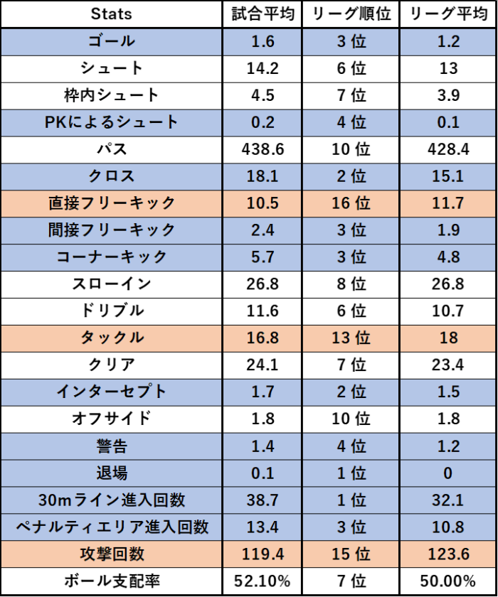 これからもインターセプトがリーグ2位となっており前からのプレスを裏付けるものになっています。