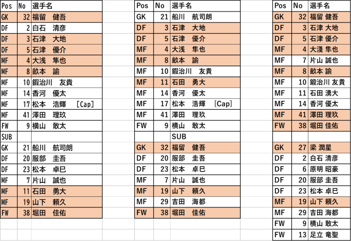 スタメンは福島は雪江選手がベンチ外そして川西選手が右CBとしてスタメン起用となりました。