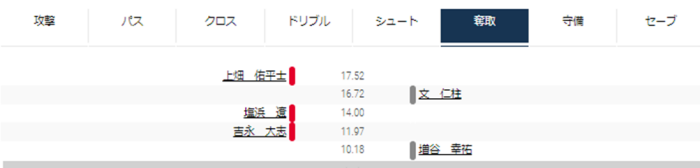 奪取ポイントでは上畑選手、塩浜選手、吉永選手が高値となっています。