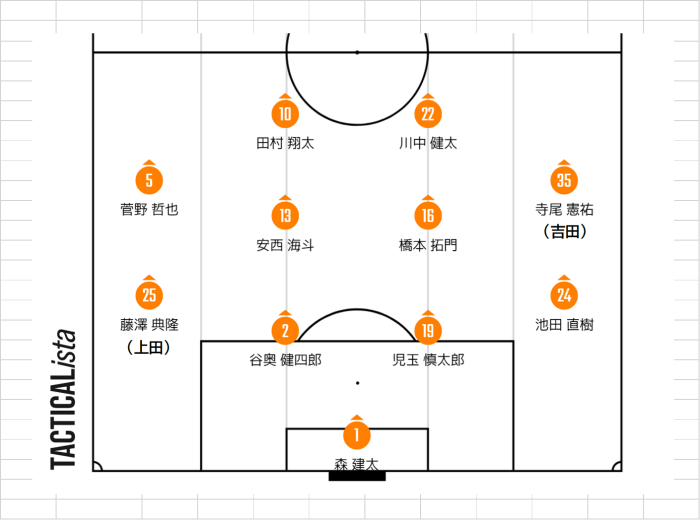 いつものように左SHで出場なら相手の攻撃の軸となる寺尾選手とのサイド攻撃争いに注目されます。