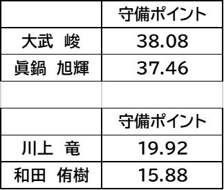下の表は今シーズンの個別のチャンスビルディングポイントでも1位、2位が38.08、37.46ですが、岐阜の守備ポイントですが川上選手、和田選手が19.92、15.88とほぼ半分になっています。