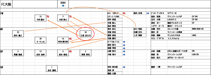 そして元ガイナーレ選手の谷口選手。鳥取時代にはスタメンで出場することは少なかったのですが大阪ではスタメンからの出場もあります。