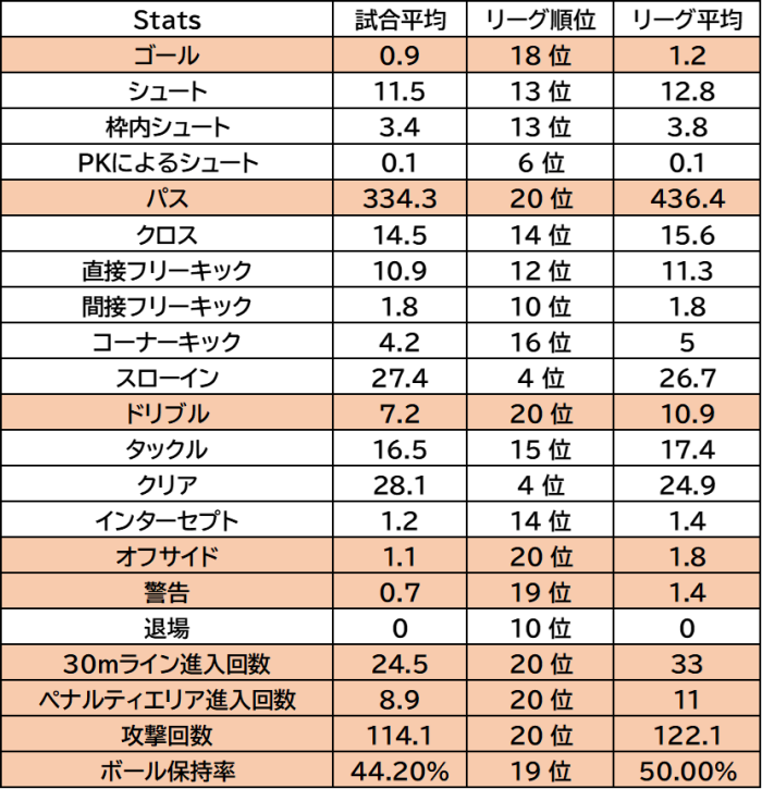 そしてフットボールラボから引用しました今シーズンのスタッツです。