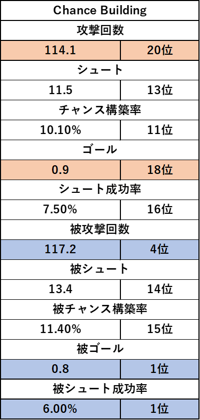 そしてチャンスビルディングポイントですが攻撃の項目はほぼ最下位。