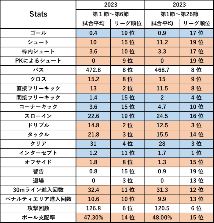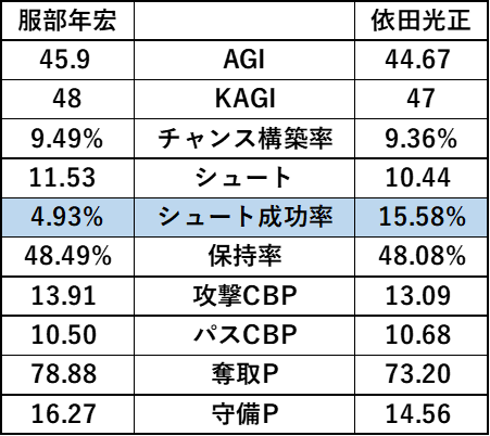 そして監督のスタッツの比較ですがシュート成功率で大きな上昇見ることが出来ます。