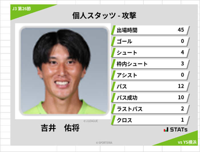 そして加入即古巣対戦となった吉井選手。ゴールはあげれなかったものの後半だけでシュート4本枠内3本と決定機を作りました。今節は重松選手が戻ってきますが起用が気になります。
