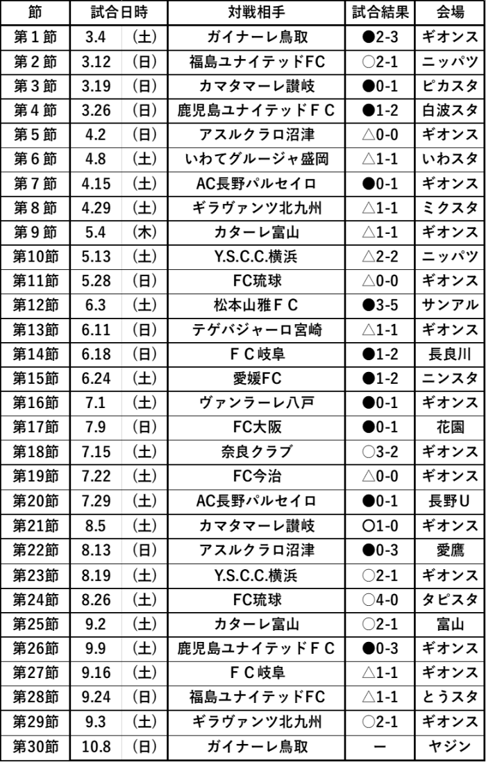 まずは前回対戦からの戦歴状況です。第3節から第17節まで勝ちが無い状況が続き、
