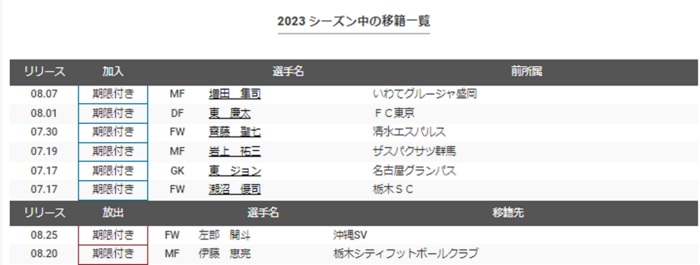 今治以上に6人の新加入がありほぼスタメンで起用されています。