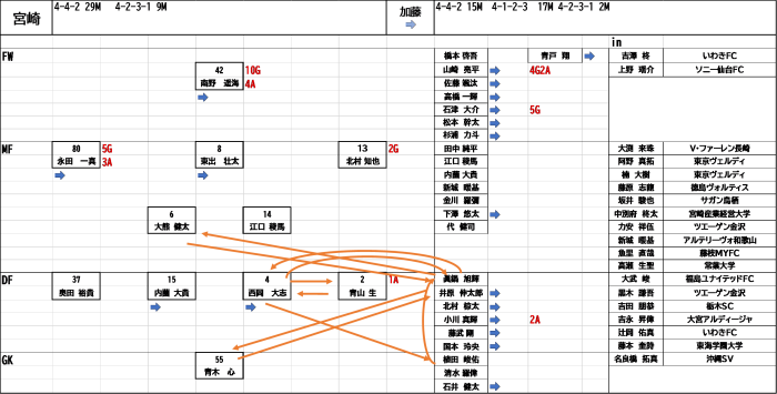 スタメン予想ですがこの2戦大きな変化はなく起用している感じです。元ガイナーレの魚里選手、奥田選手の出場はあるのでしょうか。