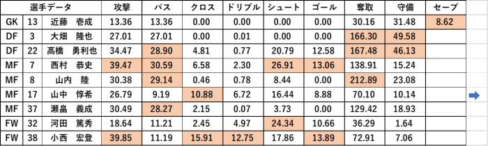 クロスは移籍した山中選手の数値も入っており現在のチームではどうでしょうか?