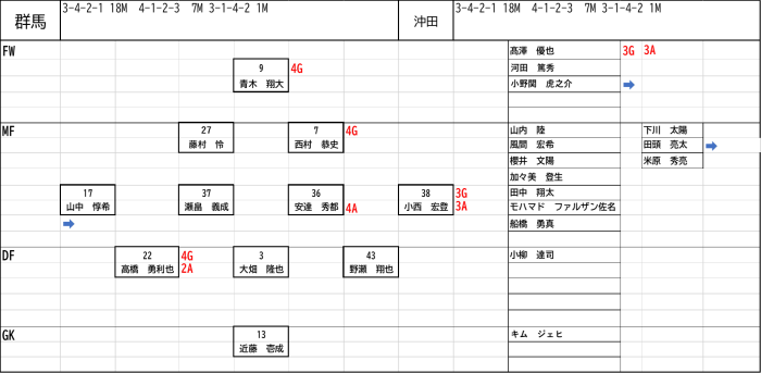 スタメンですが左WBに船橋選手を起用したり、右WBの小西選手を移したり今回のスタメンのように田中選手を使っています