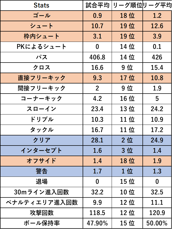 スタッツはクリア、インターセプトが上位です。警告は監督の警告も含まれていると思います。