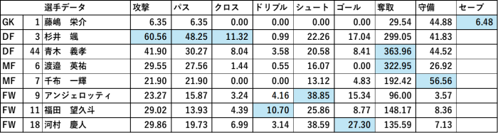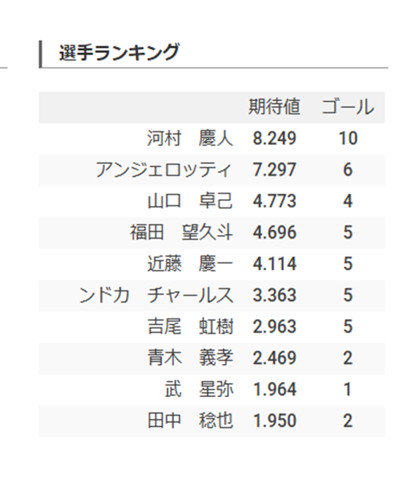 チャンスビルディングポイントもリーグ1位のゴールそしてシュートのポイントが高くなっています