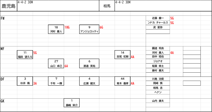 フォーメーションとしては4-4-2 両サイドがアシストをあげているのが特徴的です