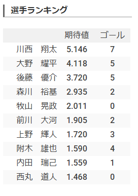 要注意選手は色々なチームで対戦の川西選手。前節もゴールを決めておりMF登録ですがFWとして活躍しています