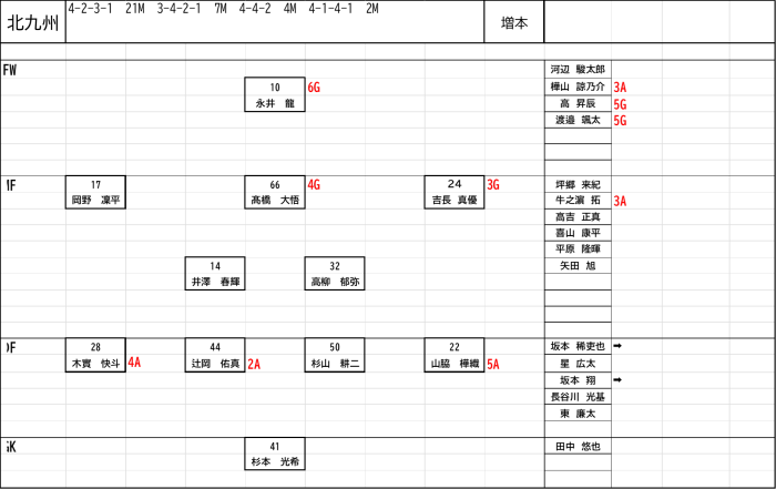 チームフォーメーションはここ5試合4-2-3-1 FW陣は永井選手が負傷の際 ゴールをあげているイメージがあります