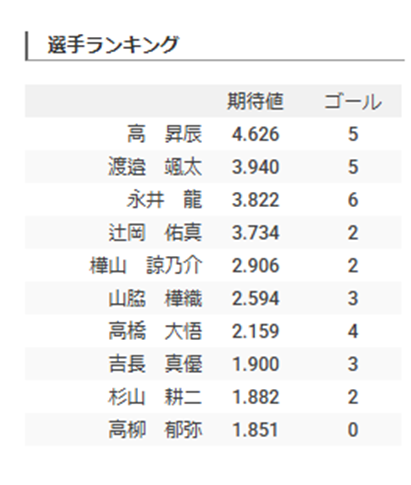 ゴールは永井選手がチーム内得点王ですがチャンスシーンとして高選手が多いイメージがあります