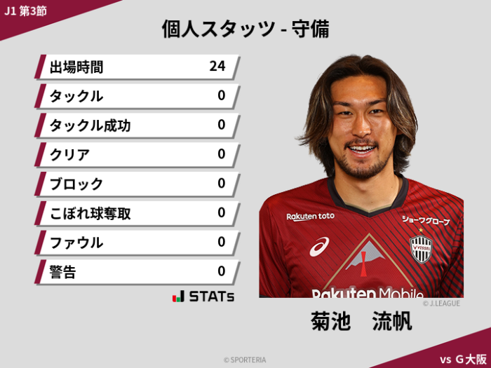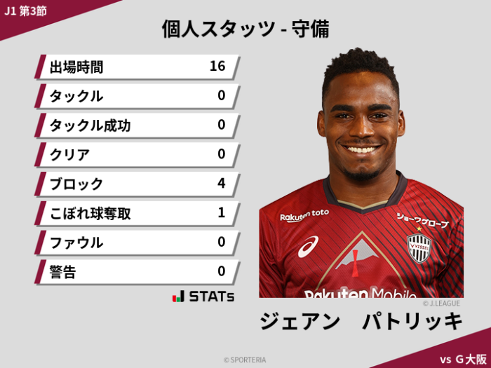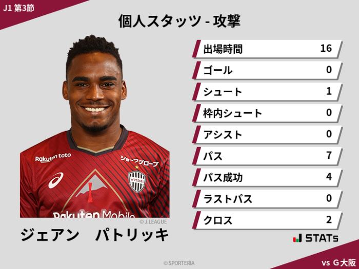 ジェアンパトリッキ→泉と同様に展開もあり攻撃よりかは守備でのプレスが多かった中で走行距離2.5キロを記録。