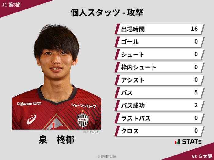 泉柊椰→プロ初出場となった前節に引き続き2試合連続出場。