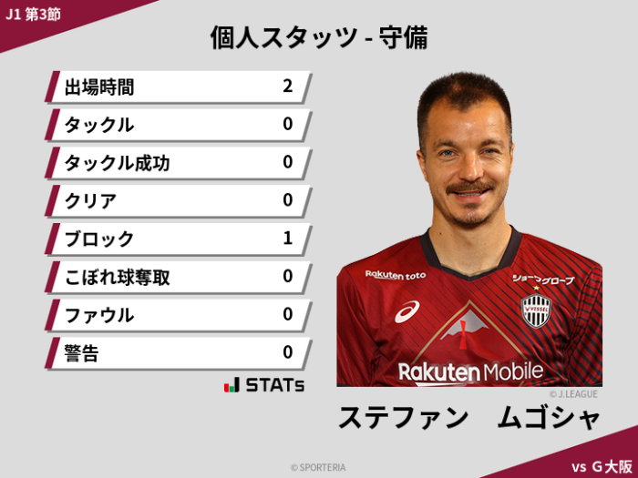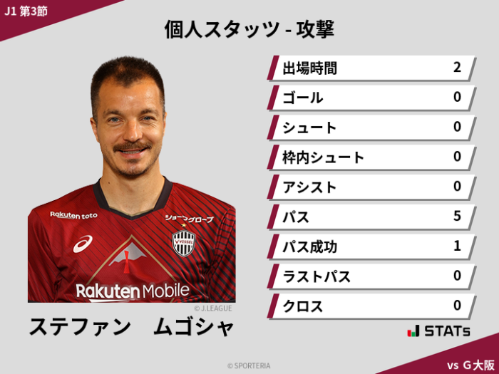 ステファンムゴシャ→ 今季初出場。泉とパトリッキと同様ボールには絡めず。