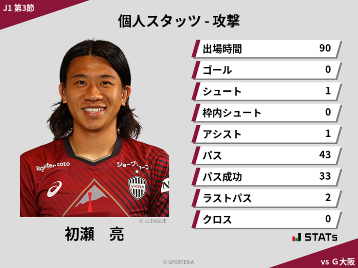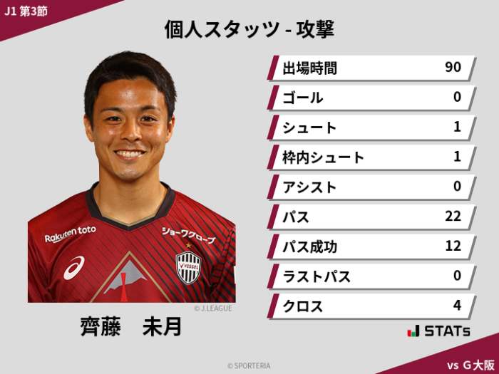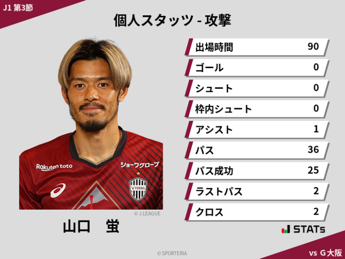 後半21分にはコーナーキックで武藤へとボールを送り今季初アシストを記録した。