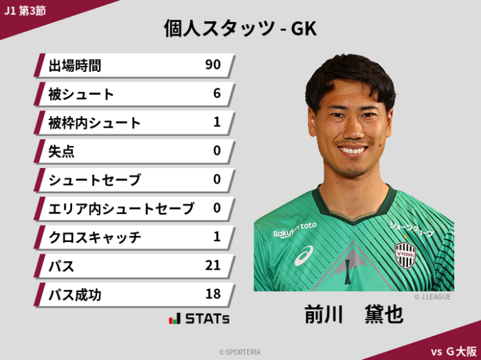 前川黛也→ピンチと言えば前後半立ち上がりの得点直後の宇佐美のシュートぐらいで共に枠に直撃と枠外とセービングの機会はなかった。