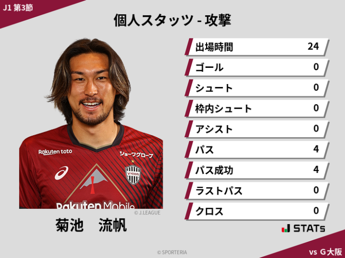 菊池流帆→今季初スタメンも前半途中に負傷し交代に。軽傷であることを祈りたい。