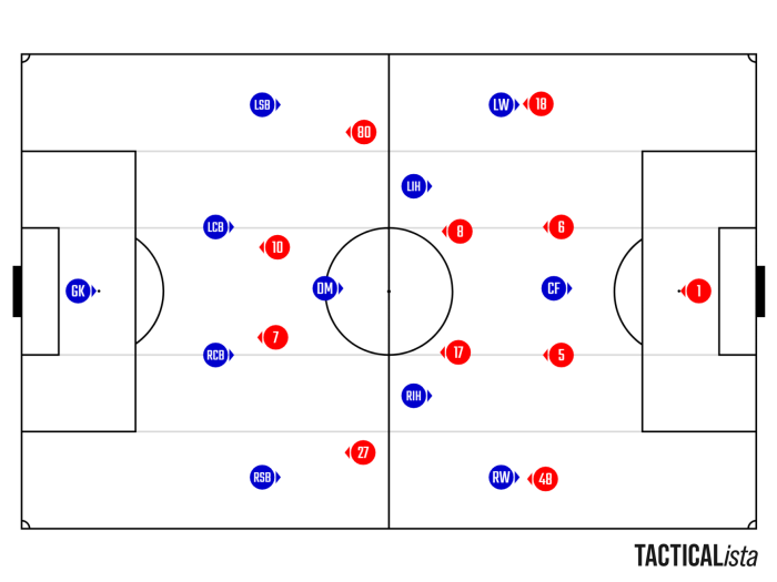 奈良さんとしては、どう経由してアンカーが前向きにボールを受ける事ができるか。中盤で数的優位を作り、試合の主導権を握れるか。