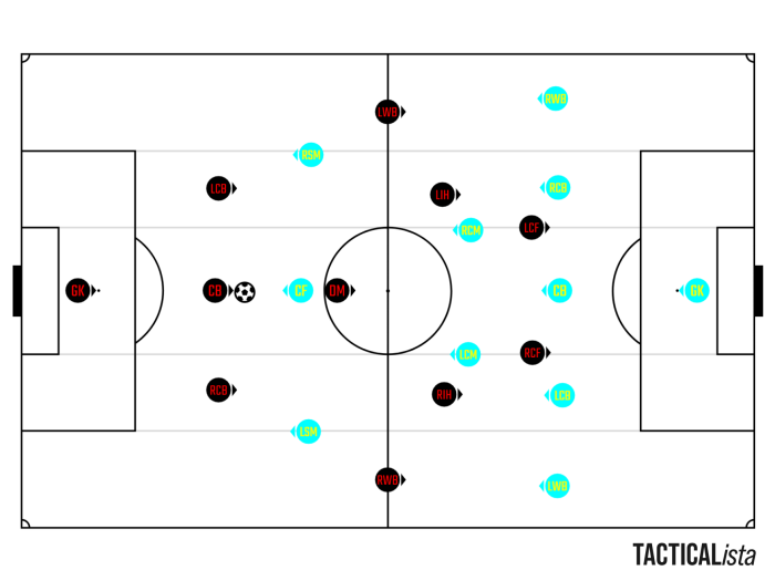 また、両サイドの人選にも星川監督の好みが垣間見える。讃岐さんは両サイド攻守に素晴らしい人材が揃っている。岩手の両ワイドが高い位置を取れるかどうかもビルドアップが関わってくる。