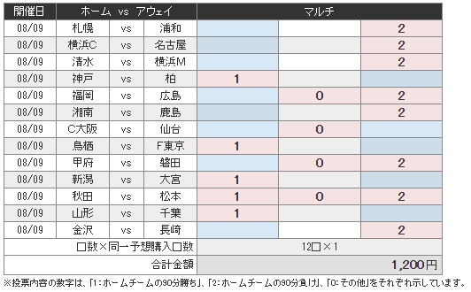 1 08/09 15:00 札幌ド 北海道コンサドーレ札幌 VS 浦和レッズ