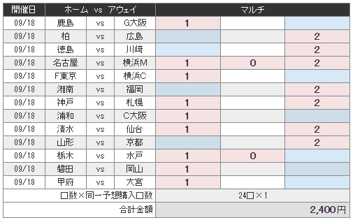 1 09/18 18:00 カシマ 鹿島アントラーズ VS ガンバ大阪