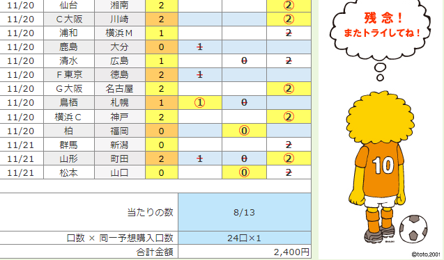 2 11/20 14:00 ヨドコウ セレッソ大阪 VS 川崎フロンターレ