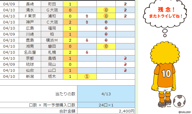 4個外しも13個外しも変わらないということで、次回に期待しています💪