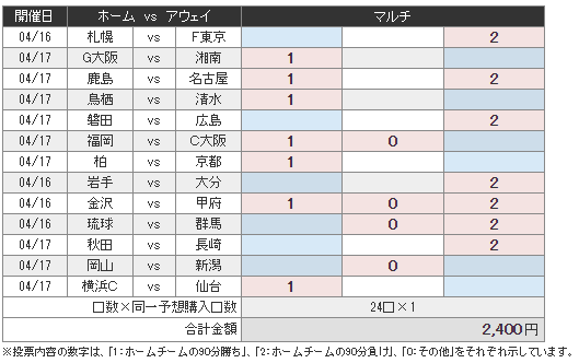 1 04/16 13:00 札幌ド 北海道コンサドーレ札幌 VS FC東京