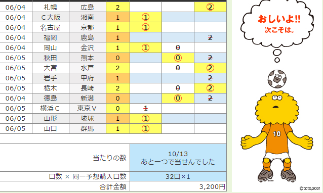→ [予想] 10 [結果] 1 当たり!
