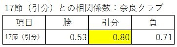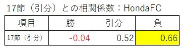 17節を含めた数値差をもとに相関分析をしたところ下記の通りになった。