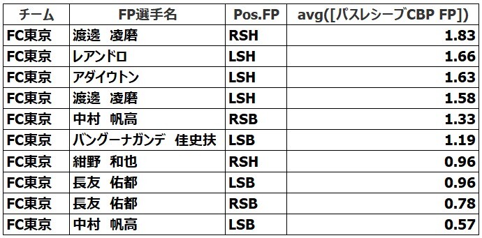 パスレシーブCBPの値が高い両サイドの選手は下記の通りです。