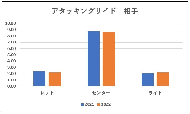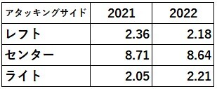 相手チームはライトの値が大きくなり、センターとレフトの値が小さくなっています。