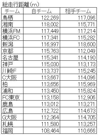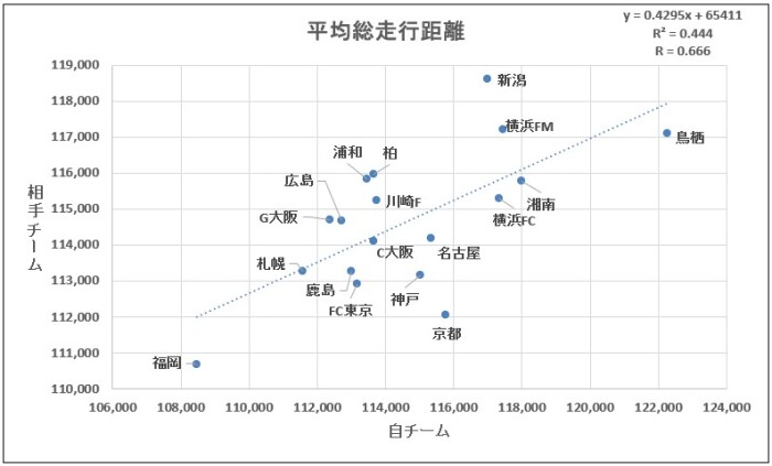 最初に、総走行距離は各チームの戦術によるところが大きいと書きましたが、相手チームによる影響も大きいようです。