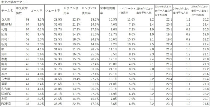 "中央攻撃時の24km/h以上の走行人数"はなかなか解釈が難しそうですね。