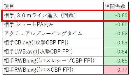 注目したのは赤枠の相手:30mライン進入(回数)です。
