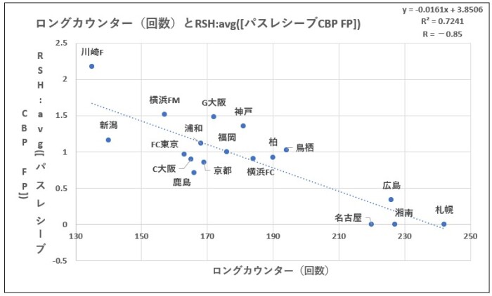 RSH:avg([パスレシーブCBP FP])が0のチーム(名古屋、湘南、札幌)もありますので、少し注意が必要です。