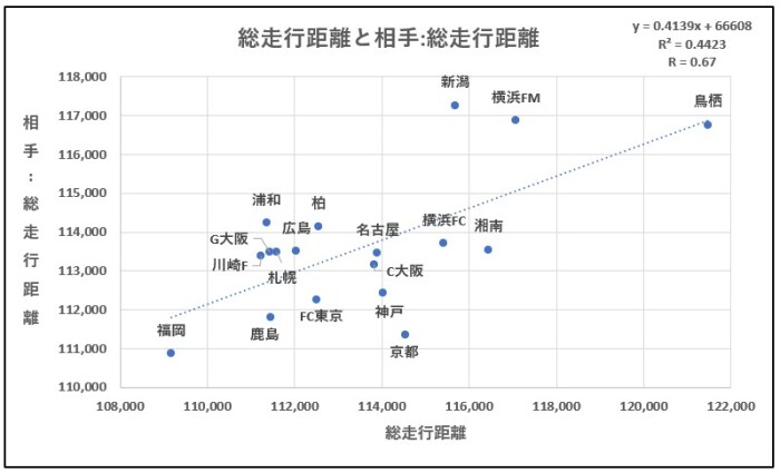 「単に「相手:総走行距離」だけではなく「相手チーム走行距離ー自チーム走行距離」も増えるかもしれません?」