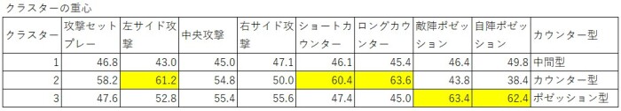 このことから、ショートカウンターとロングカウンターが強いクラスター2をカウンター型と定義しました。